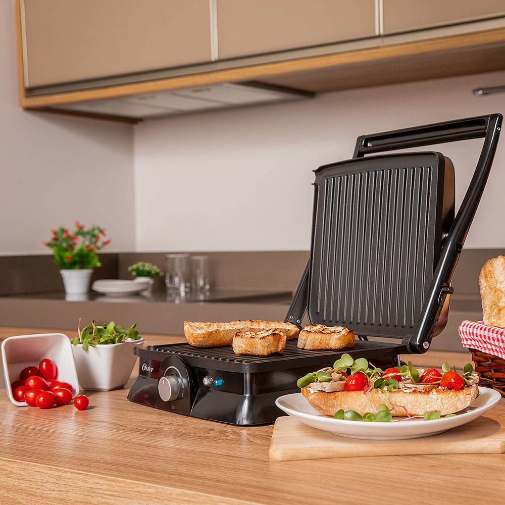 Grill Elétrico Sanduicheira Multiuso Oster 2 em 1 Inox Altura Ajustável