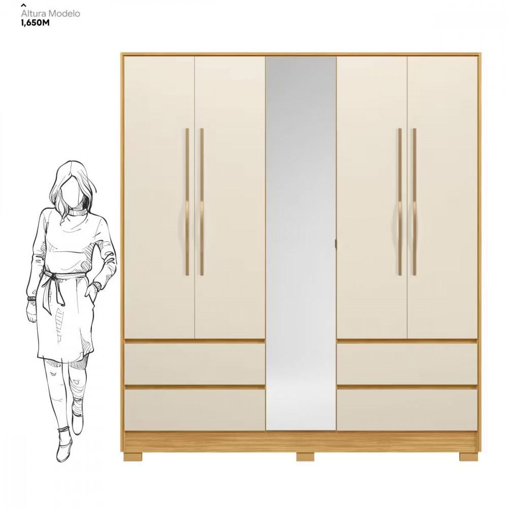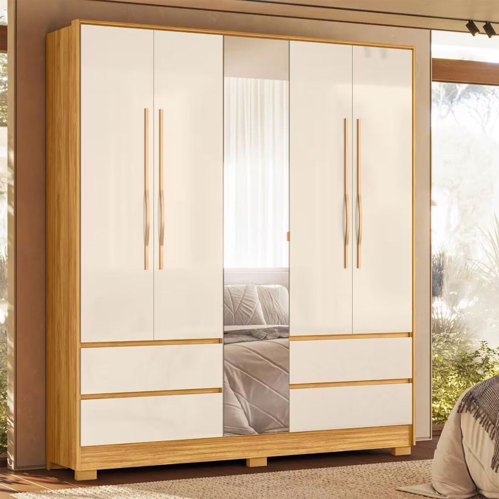 Guarda-Roupa 5 Portas Demóbile Turin Cinamomo/Off-White com Espelho