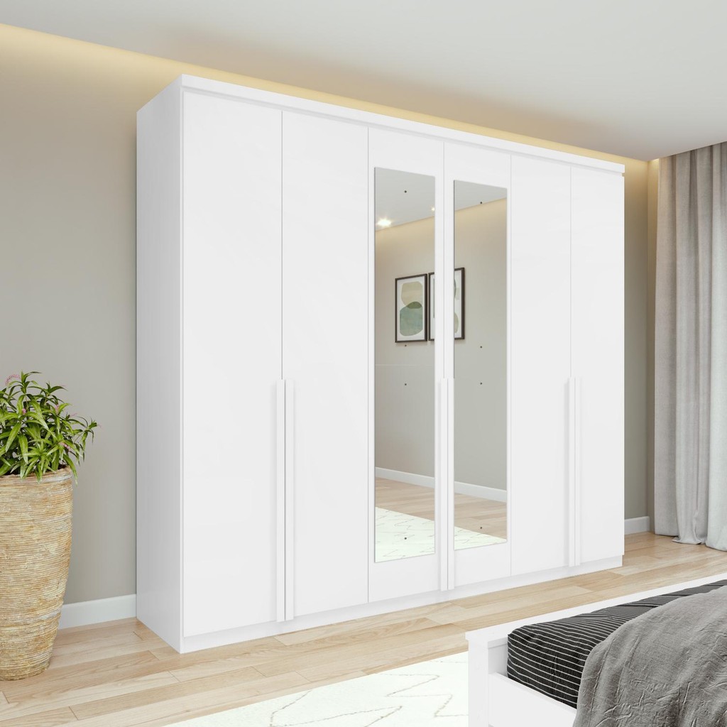 Guarda-Roupa Casal 100% MDF Alonzo 6 Portas 4 Gavetas Com Espelho Branco