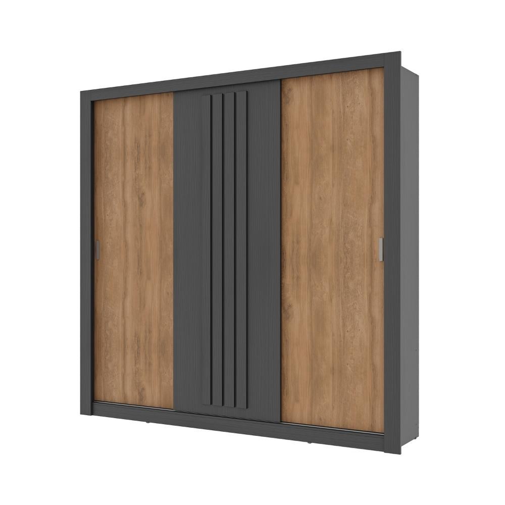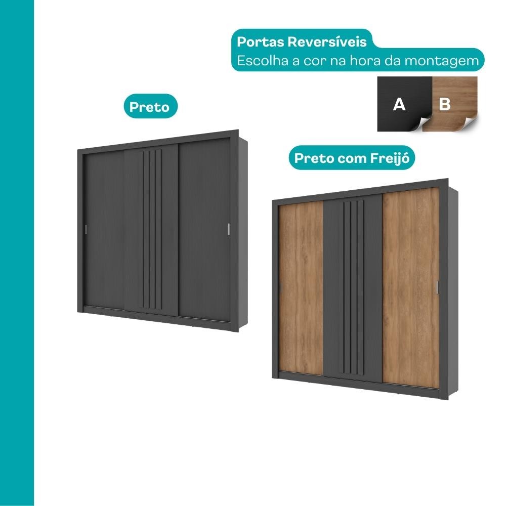 Guarda Roupa Casal 3 Portas Doha Carraro Ripado Preto Touch com Freijó