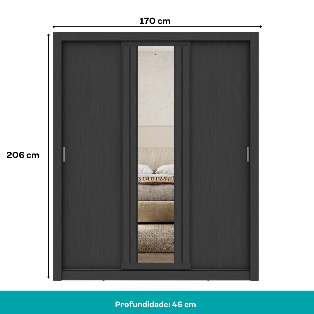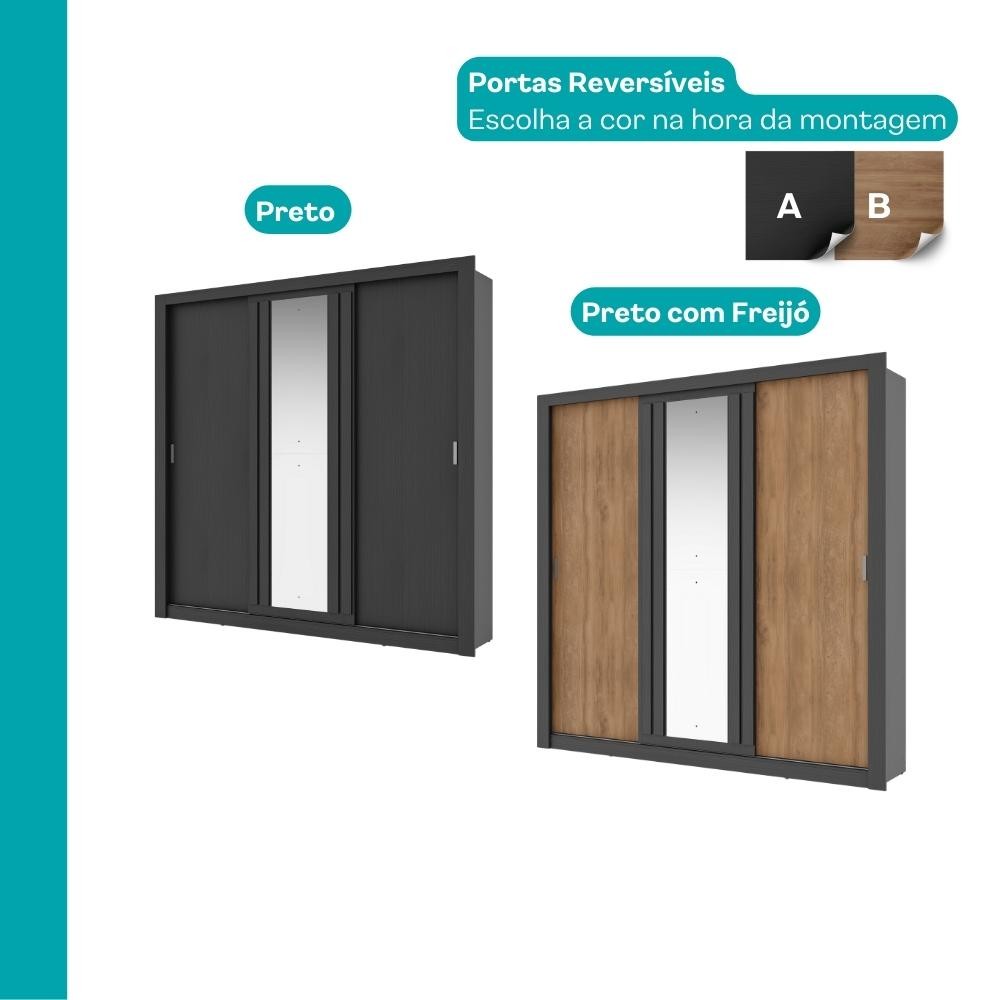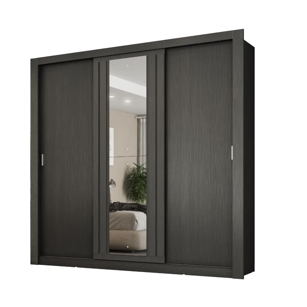 Guarda Roupa Casal 3 Portas Doha Lux Carraro Ripado Preto Touch