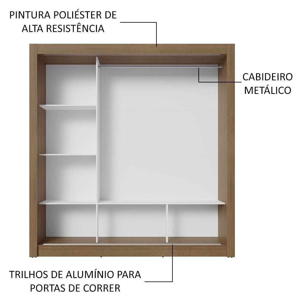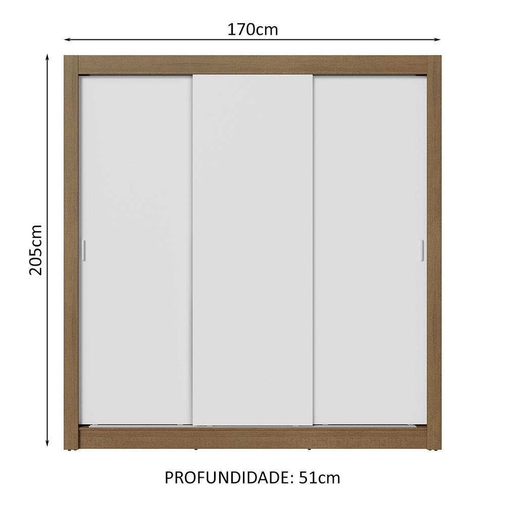 Guarda-Roupa Casal 3 Portas de Correr Rustic/Branco Nobre Madesa
