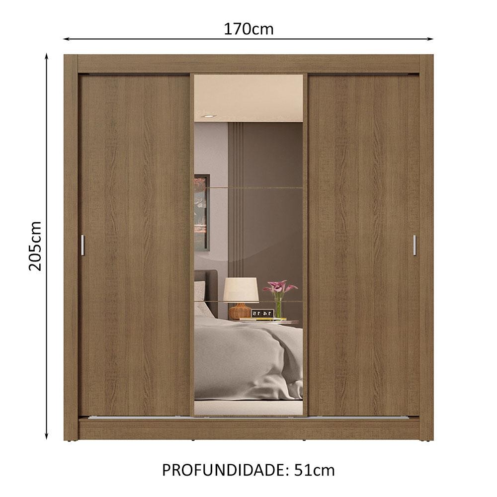 Guarda-Roupa Casal 3 Portas de Correr com Espelho 4 Gavetas Rustic Sublime Plus Madesa