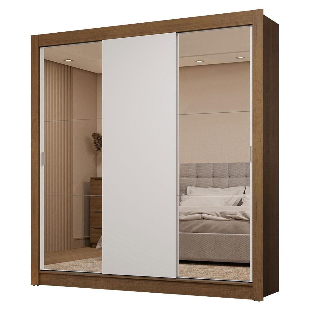 Guarda-Roupa Casal 3 Portas de Correr com Espelhos 2 Gavetas Rustic/Branco Sublime Madesa