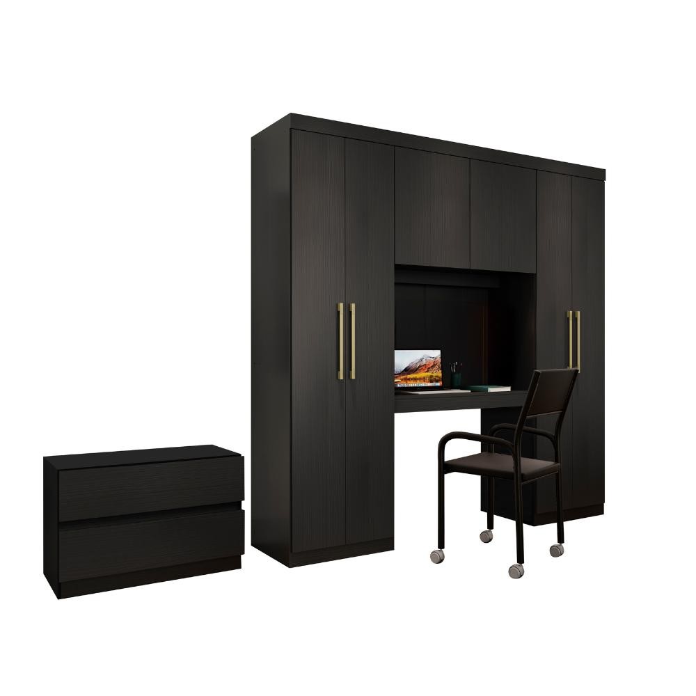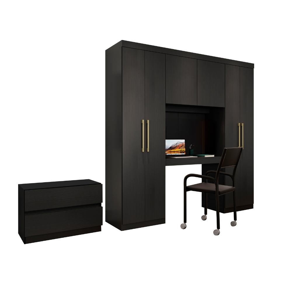 Guarda Roupa Casal 6 Portas 2 Gavetas Porto Preto com Escrivaninha