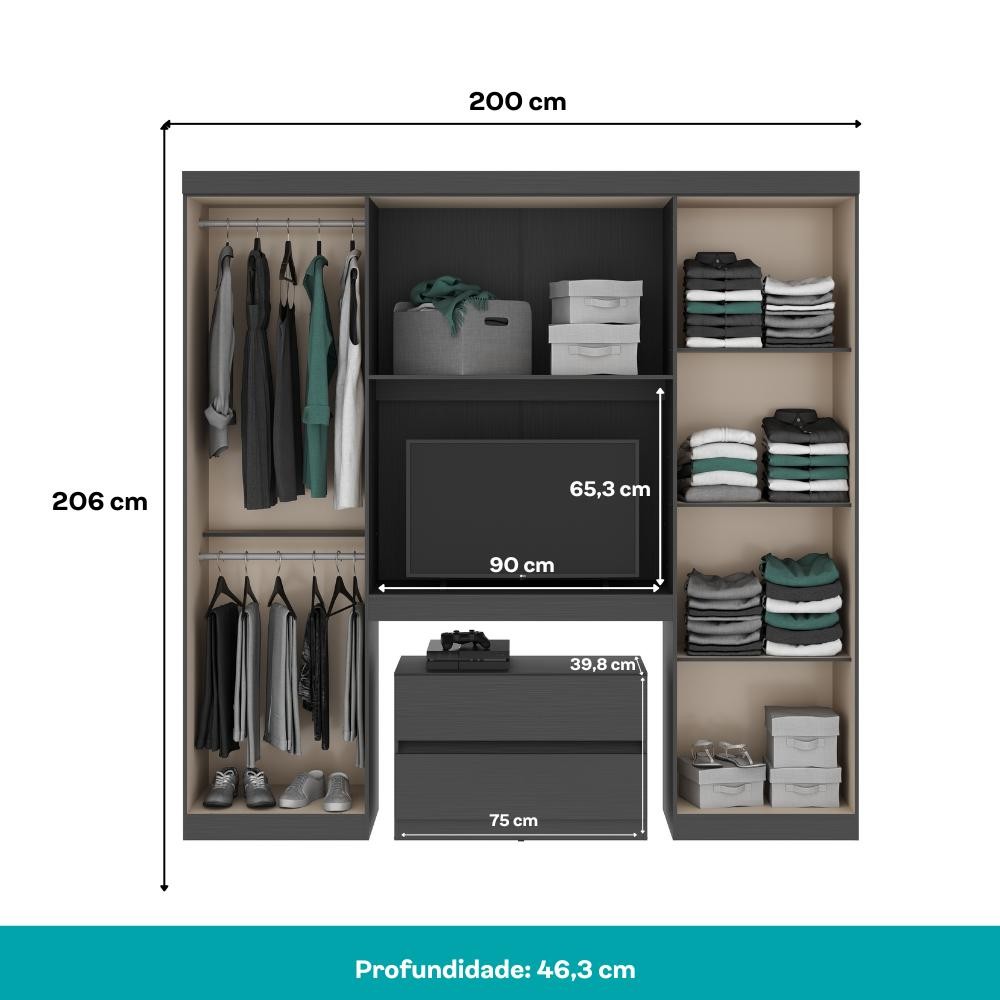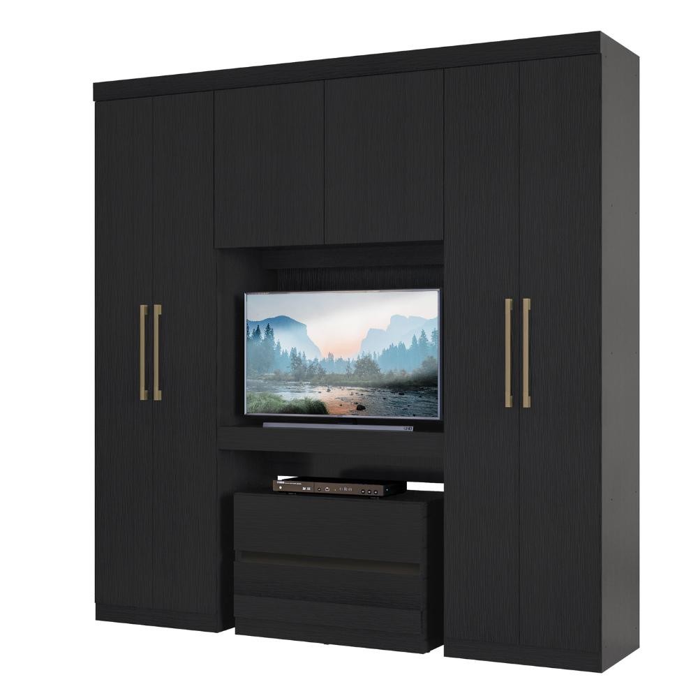 Guarda Roupa Casal 6 Portas 2 Gavetas Porto Preto com Painel de TV