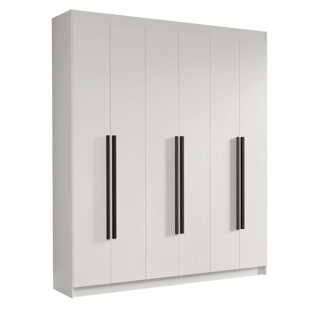 Guarda-Roupa Casal 6 Portas Batentes Branco/Branco/Preto Saturno Madesa
