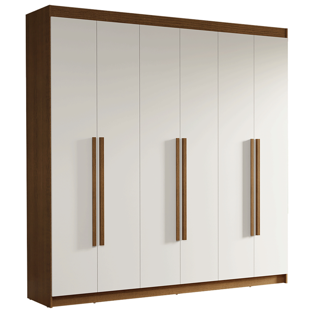 Guarda-Roupa Casal 6 Portas Batentes Rustic/Branco/Rustic Venus Madesa