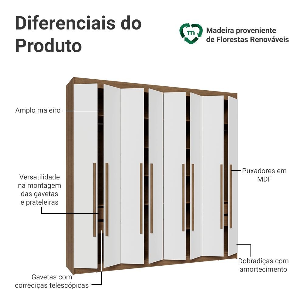 Guarda-Roupa Casal 8 Portas Batentes Rustic/Branco/Rustic Saturno Madesa