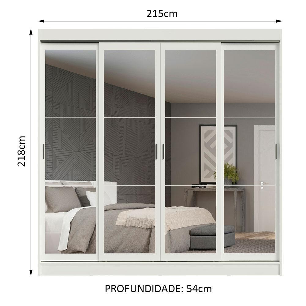 Guarda-Roupa Casal Madesa Austin 4 Portas de Correr de Espelho 3 Gavetas - Branco
