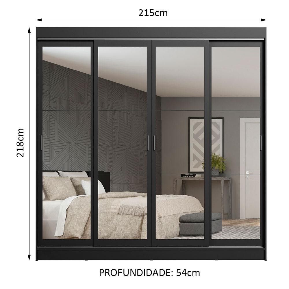 Guarda-Roupa Casal Madesa Austin 4 Portas de Correr de Espelho 3 Gavetas