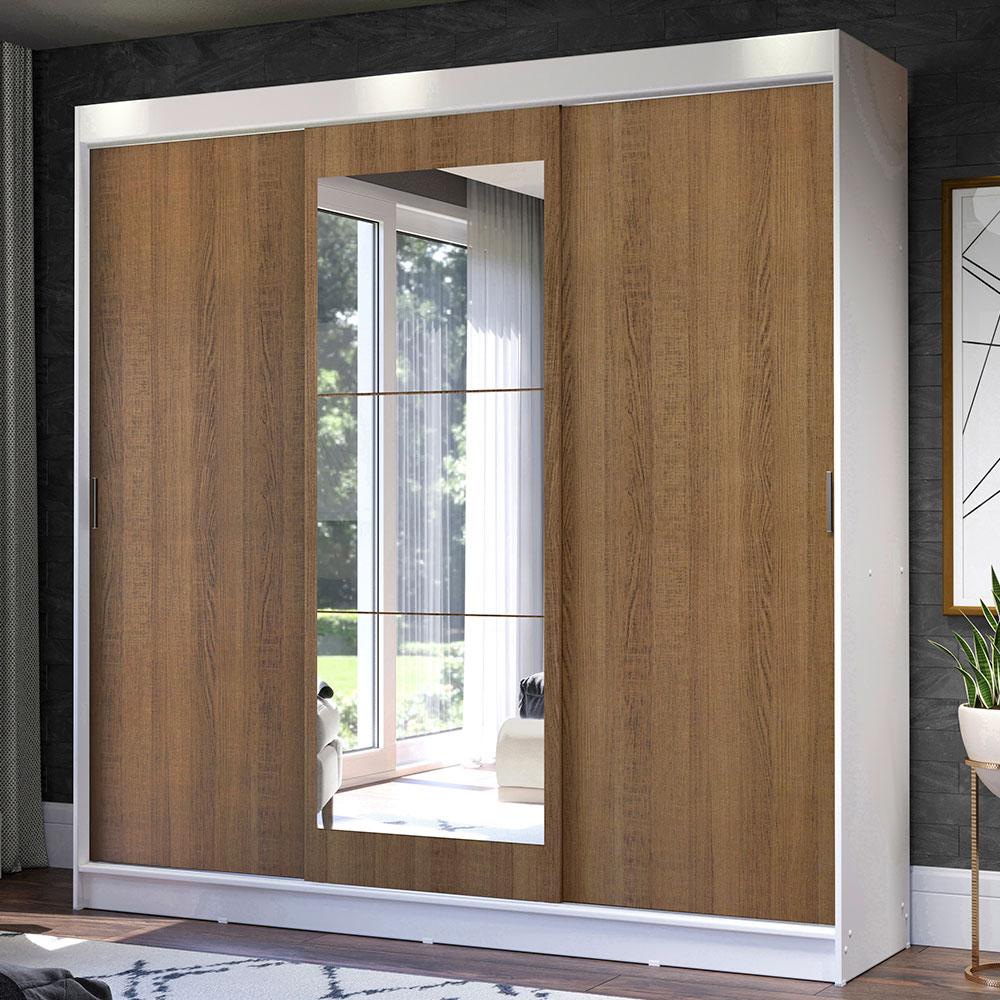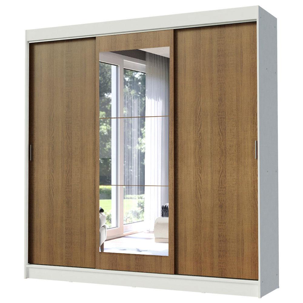 Guarda-Roupa Casal Madesa Istambul 3 Portas de Correr com Espelho 3 Gavetas - Branco/Rustic