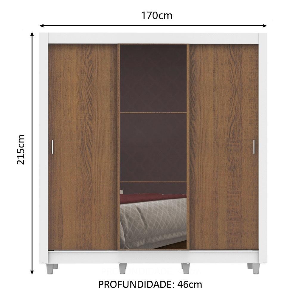 Guarda Roupa Casal Madesa Lyon Plus 3 Portas de Correr com Espelho 4 Gavetas com Pés - Branco/Rustic