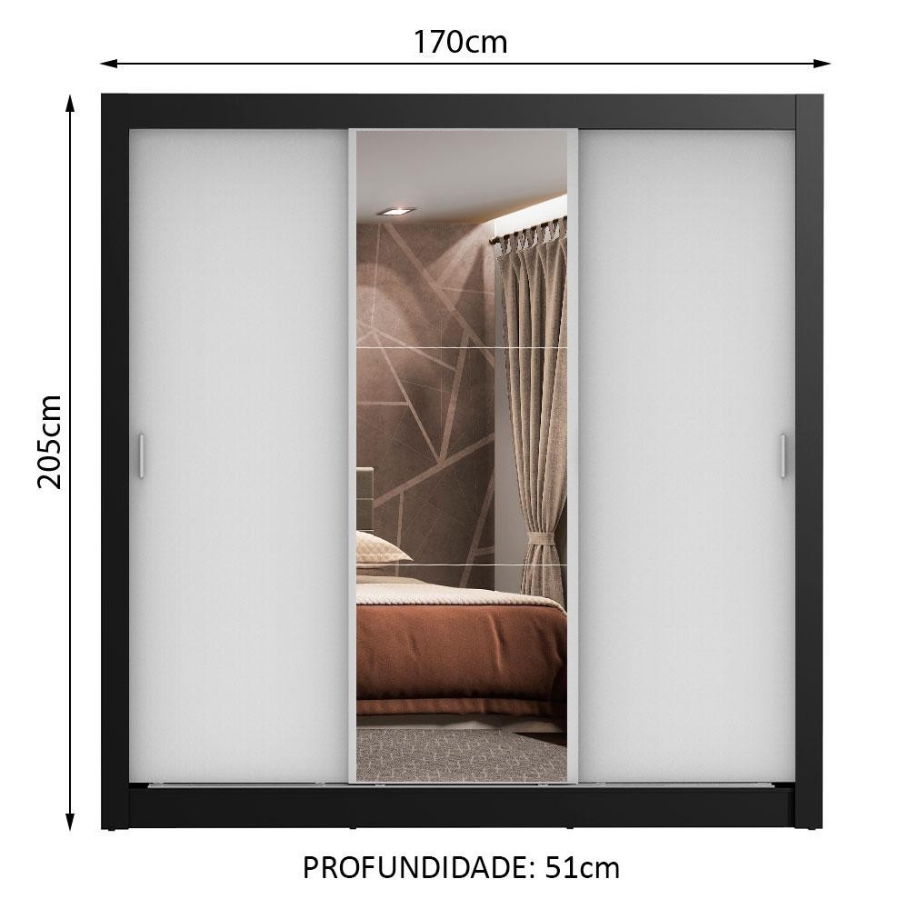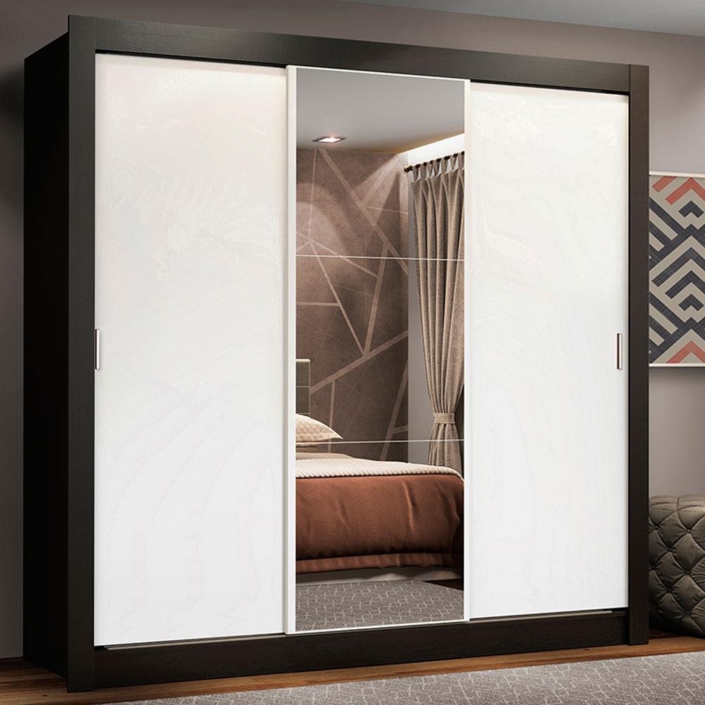 Guarda Roupa Casal Madesa Lyon Plus 3 Portas de Correr com Espelho 4 Gavetas
