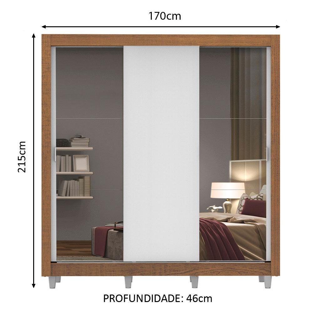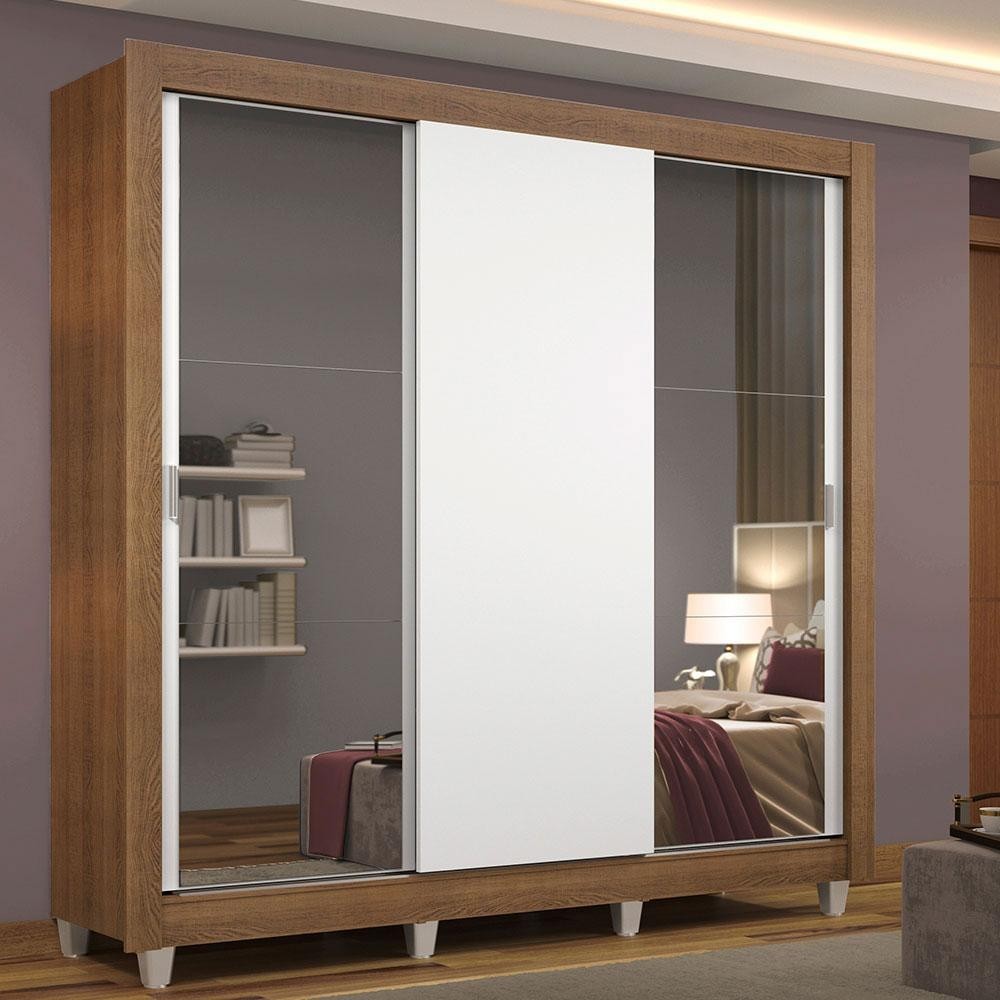 Guarda Roupa Casal Madesa Mônaco 3 Portas de Correr com Espelhos com Pés