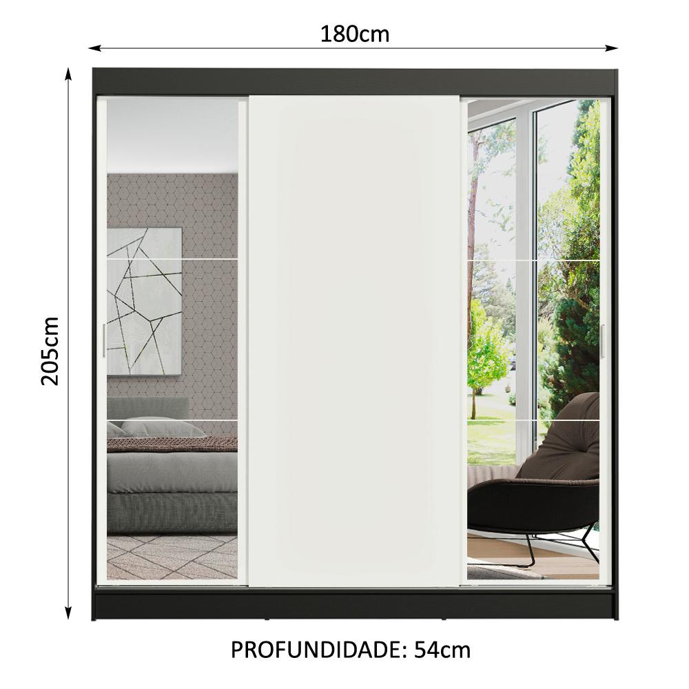 Guarda-Roupa Casal Madesa Reno 3 Portas de Correr com Espelhos - Preto/Branco