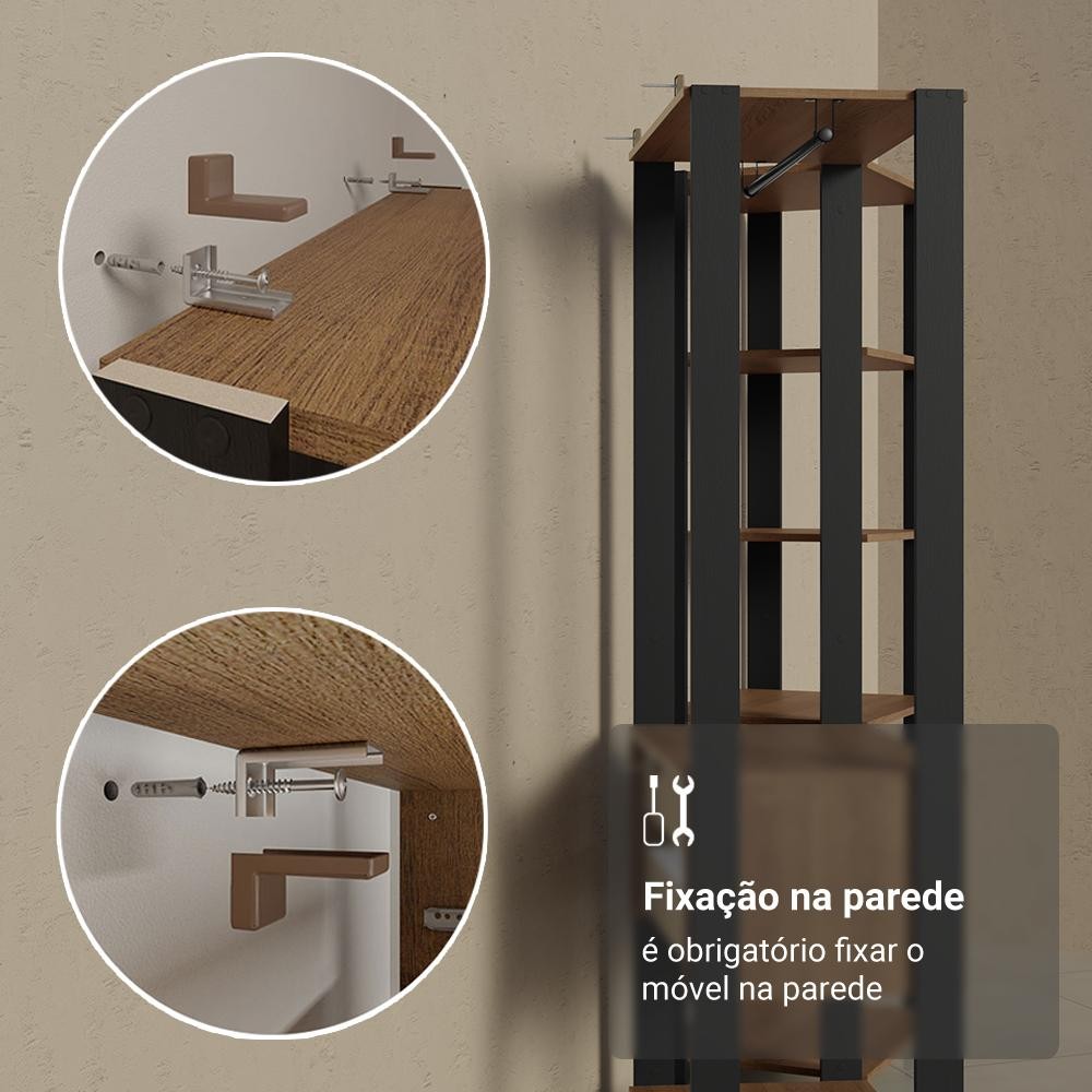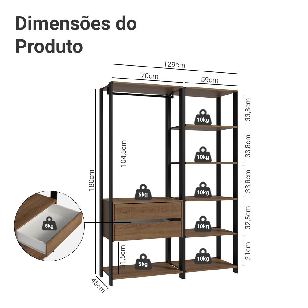 Guarda-Roupa Closet Modulado Valencia 2 Gavetas 129cm Rustic/Preto Madesa XA