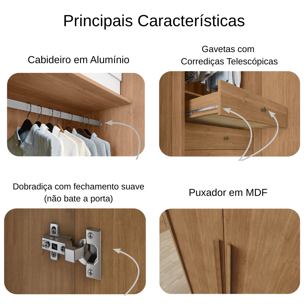 Guarda Roupa Modulado Casal Safira 010 em MDF Com 8 Portas e 3 Gavetas