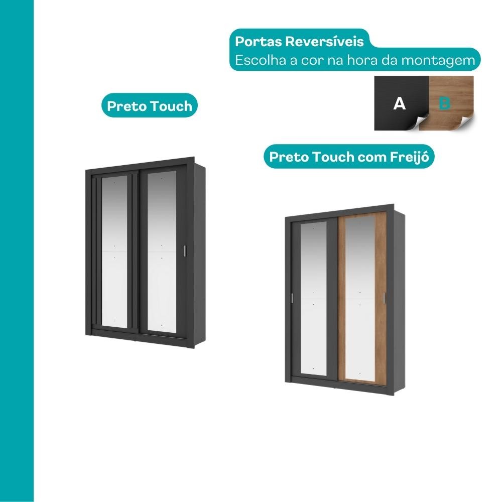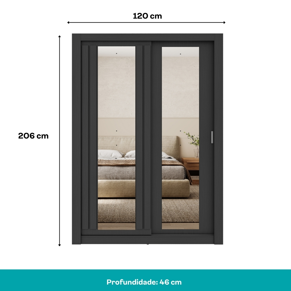 Guarda Roupa Solteiro 2 Portas Darvi Prime Carraro Ripado Preto Touch