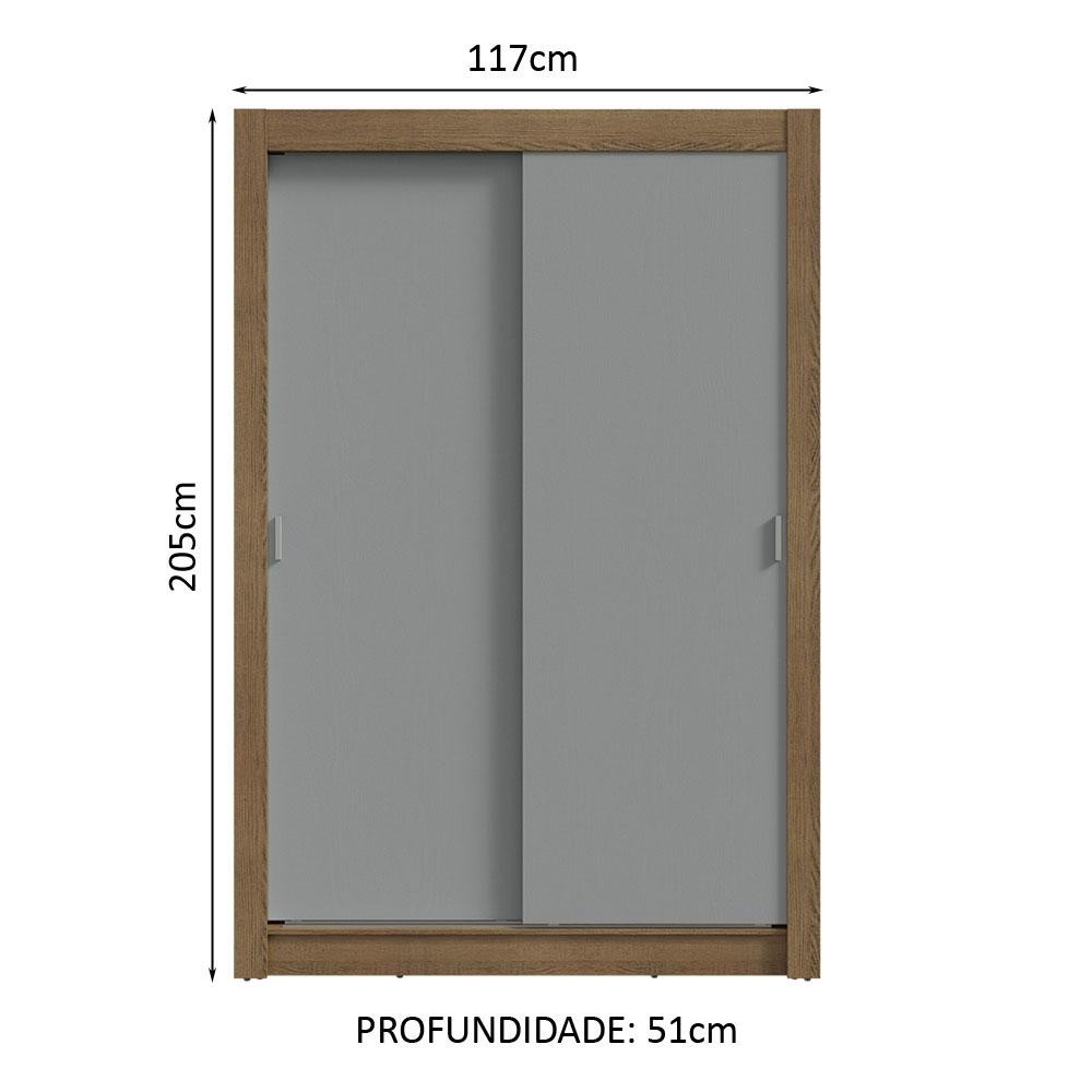Guarda-Roupa Solteiro 2 Portas de Correr Rustic/Cinza Milano Madesa