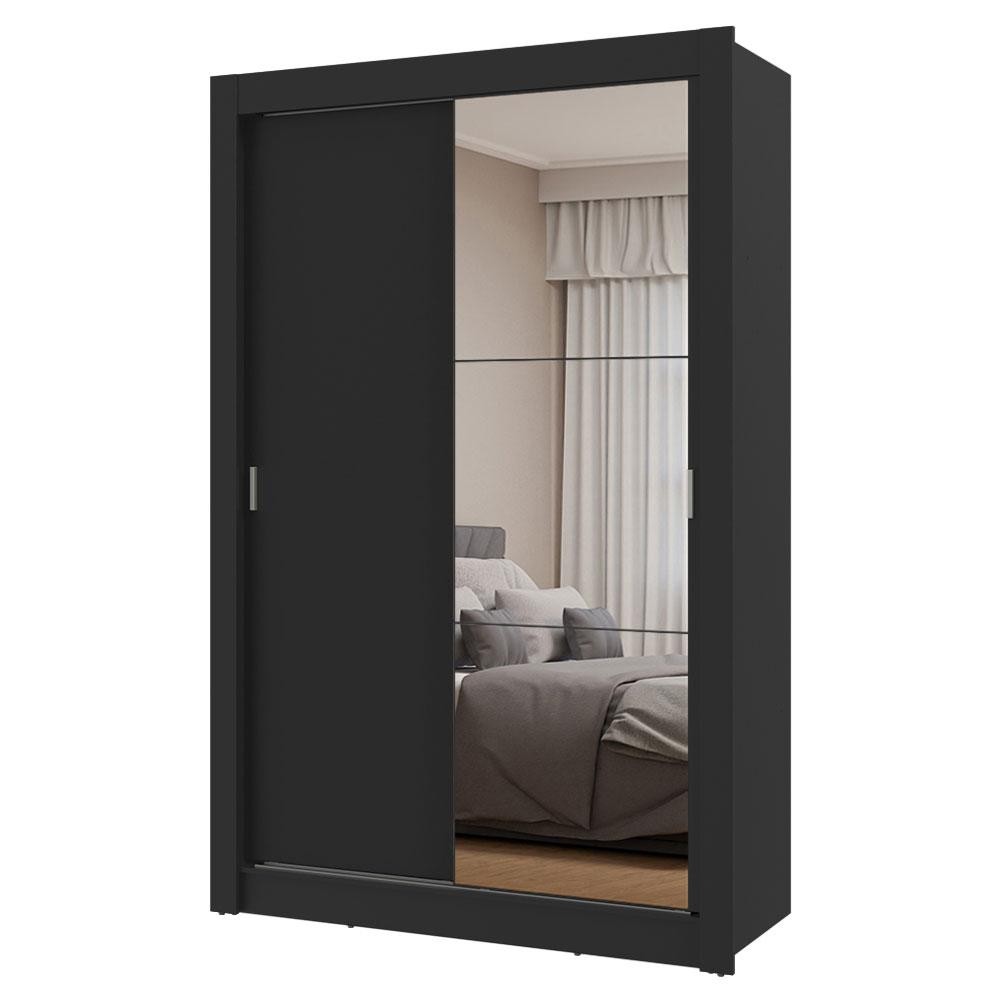 Guarda-Roupa Solteiro 2 Portas de Correr com Espelho Preto Milano Madesa