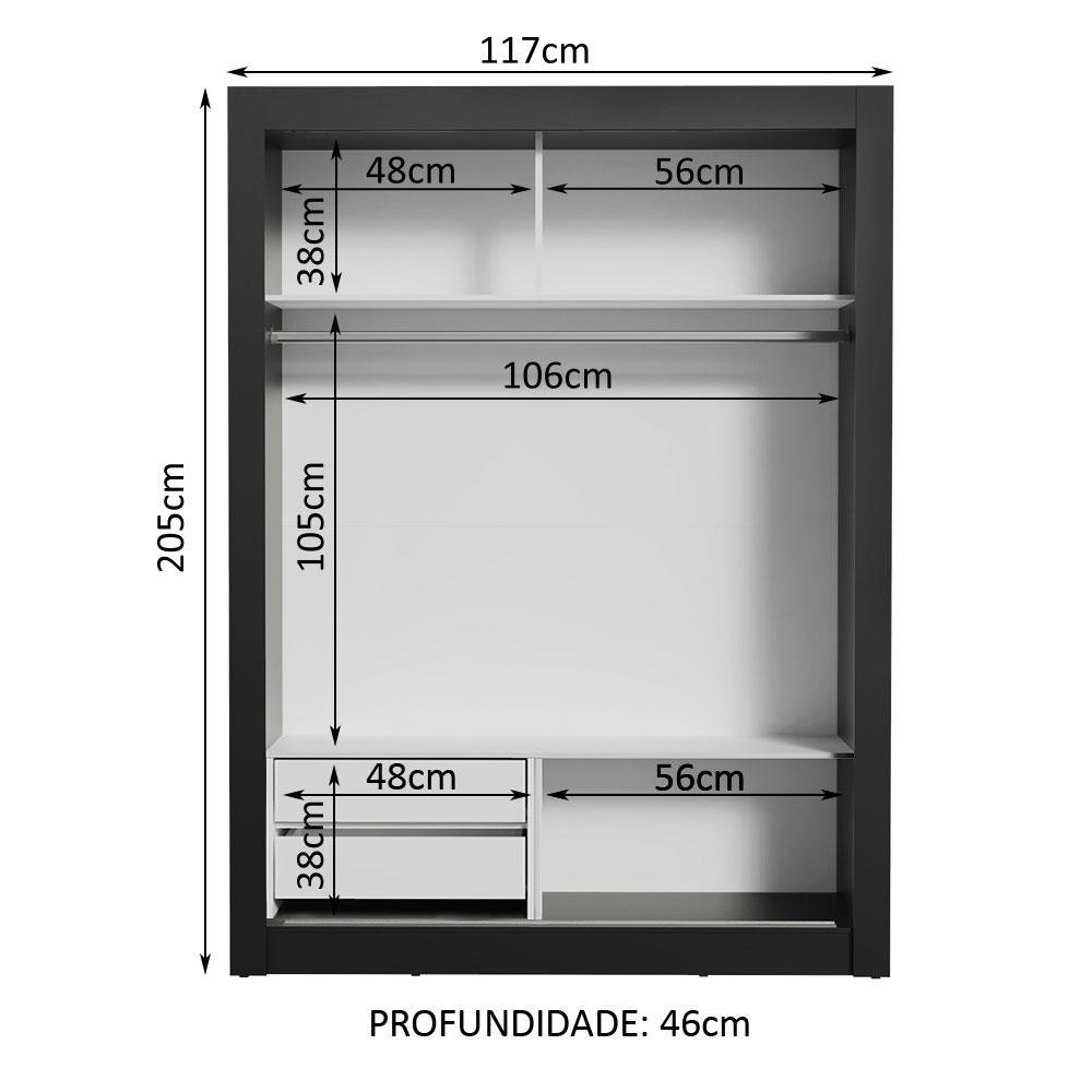 Guarda-Roupa Solteiro Madesa Dallas 2 Portas de Correr 2 Gavetas - Preto/Branco