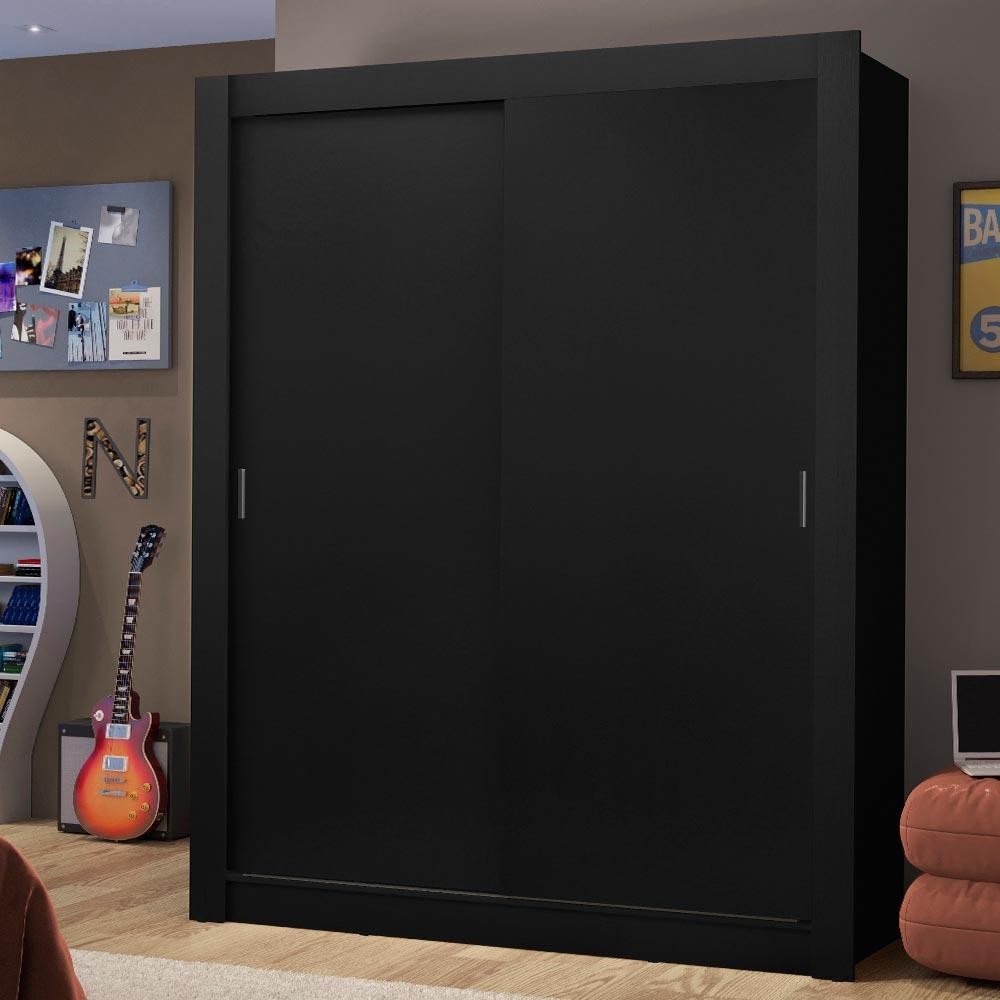 Guarda-Roupa Solteiro Madesa Dallas 2 Portas de Correr 2 Gavetas - Preto