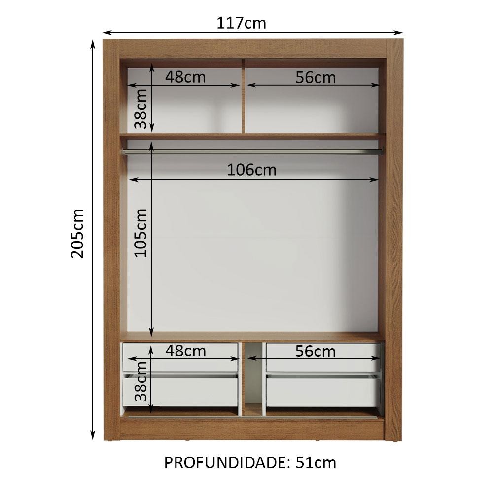 Guarda-Roupa Solteiro Madesa Dallas Plus 2 Portas de Correr 4 Gavetas - Rustic/Branco