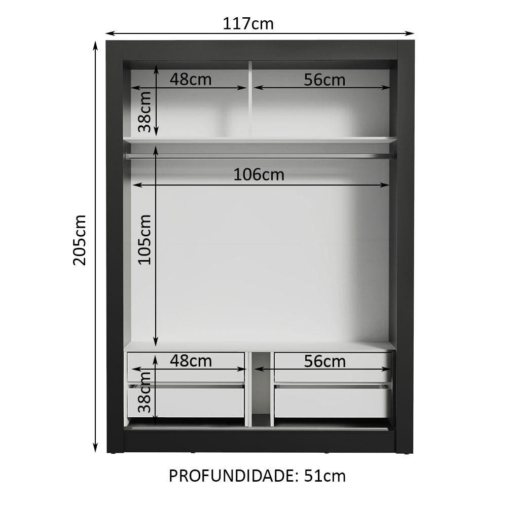 Guarda-Roupa Solteiro Madesa Dallas Plus 2 Portas de Correr de Espelho 4 Gavetas