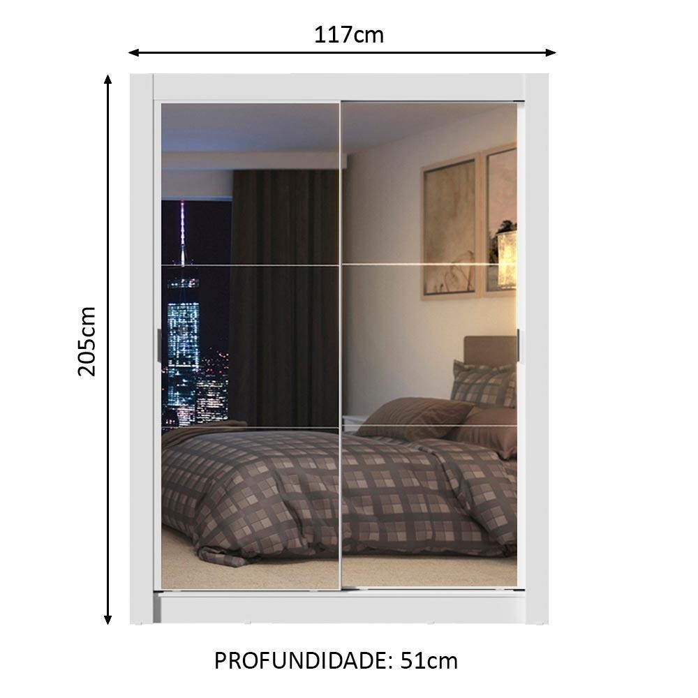 Guarda-Roupa Solteiro Madesa Denver 2 Portas de Correr de Espelho - Branco