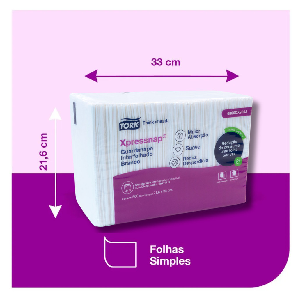 Guardanapo Grande Folha Simples Advanced Xpressnap com 500 unidades Tork
