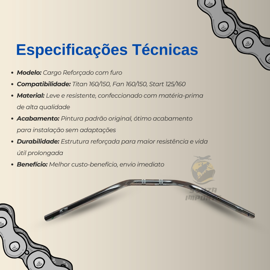 Guidão Modelo Cargo Reforçado Fan Titan 150 160 Com Furo Padrão Original