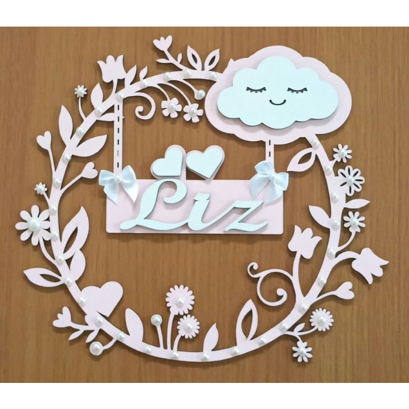 Guirlanda Nuvem chuva de amor 30cm personalizada