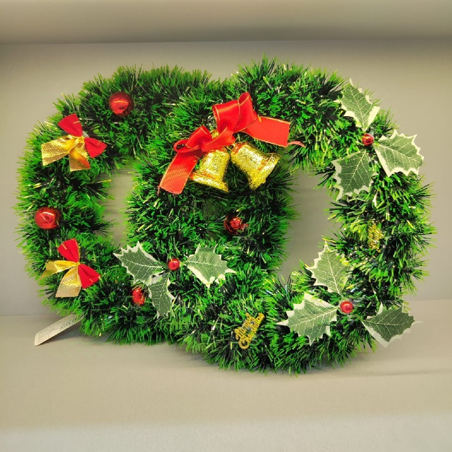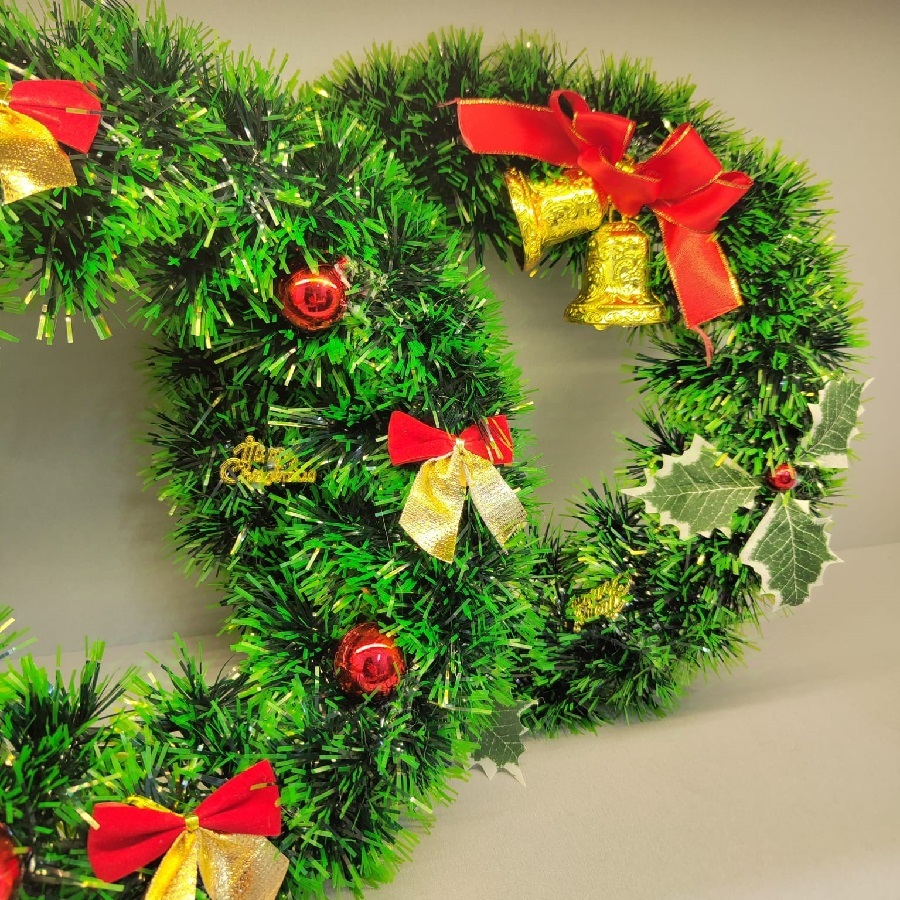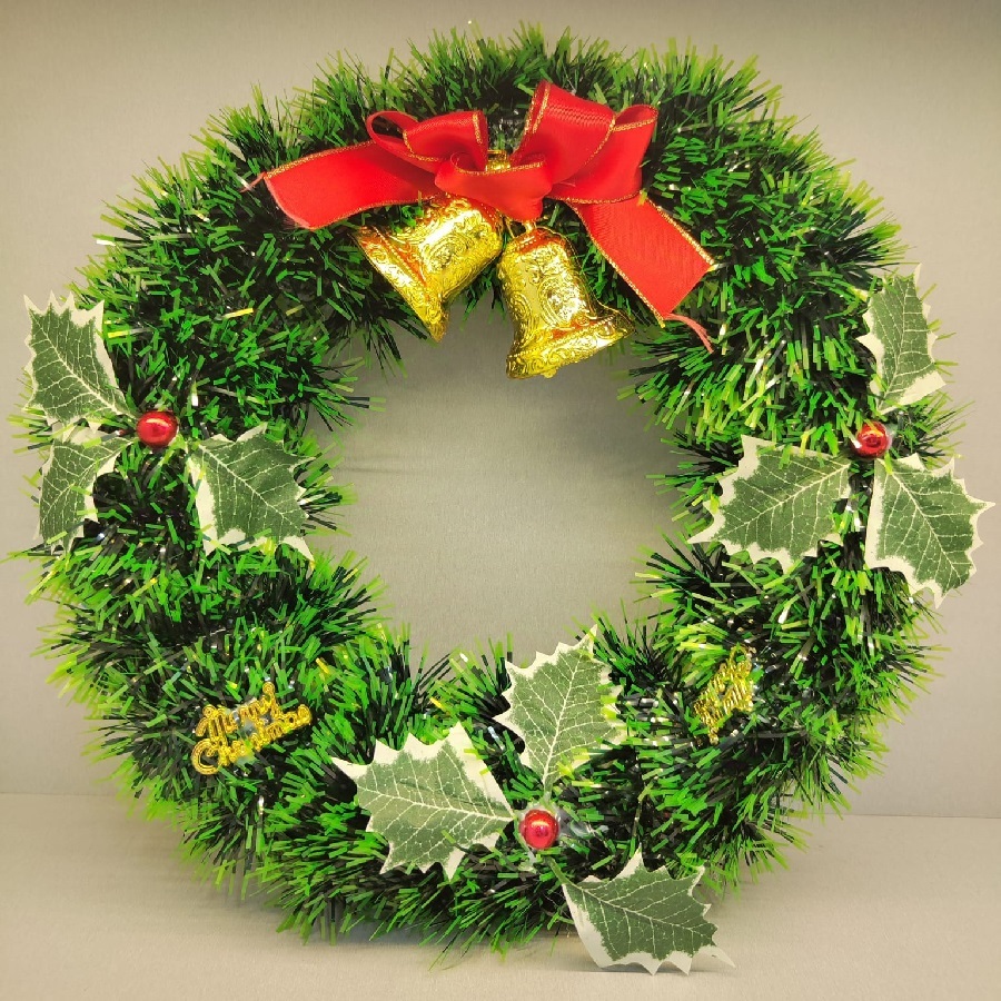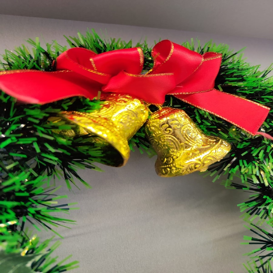 Guirlanda Verde 30Cm Para Porta Com Sinos Ou Bola Ou Laço Enfeite De Natal Decoração Natalina