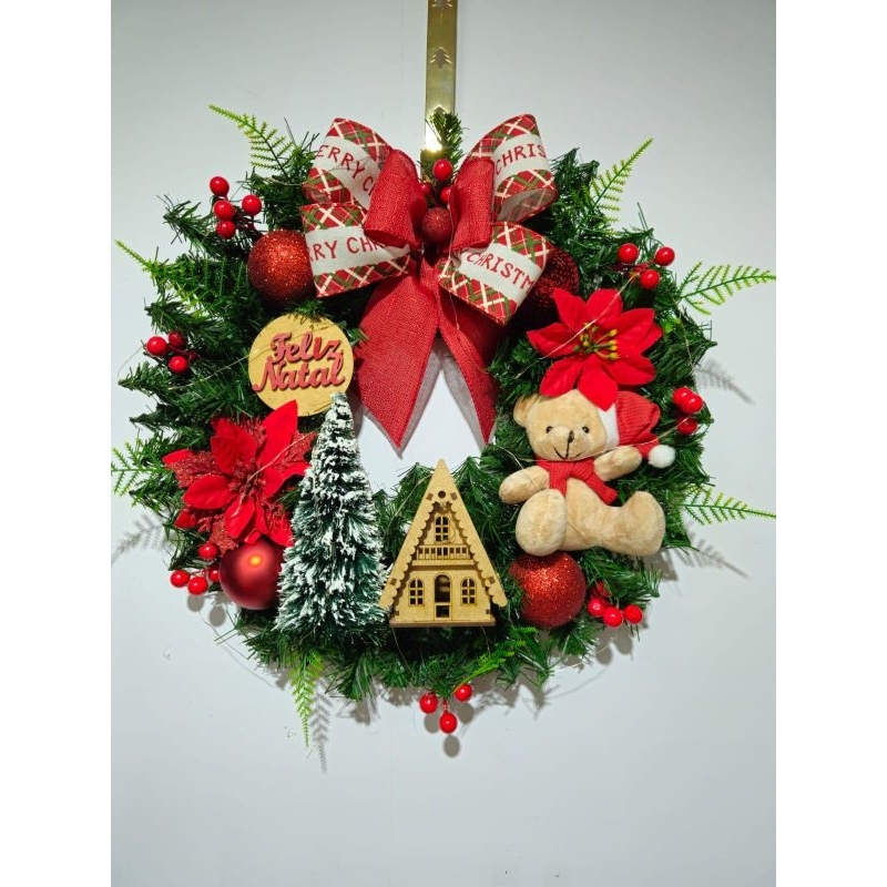 Guirlanda de Natal 40cm ursinho e pisca pisca enfeite de natal