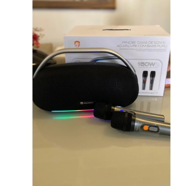 H'Maston RN06 Caixa de Som Boombox sem fio 120W com 2 Microfones