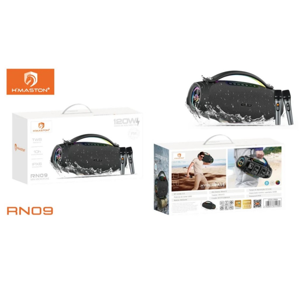 H'Maston RN09 Caixa de Som Boombox Bluetooth