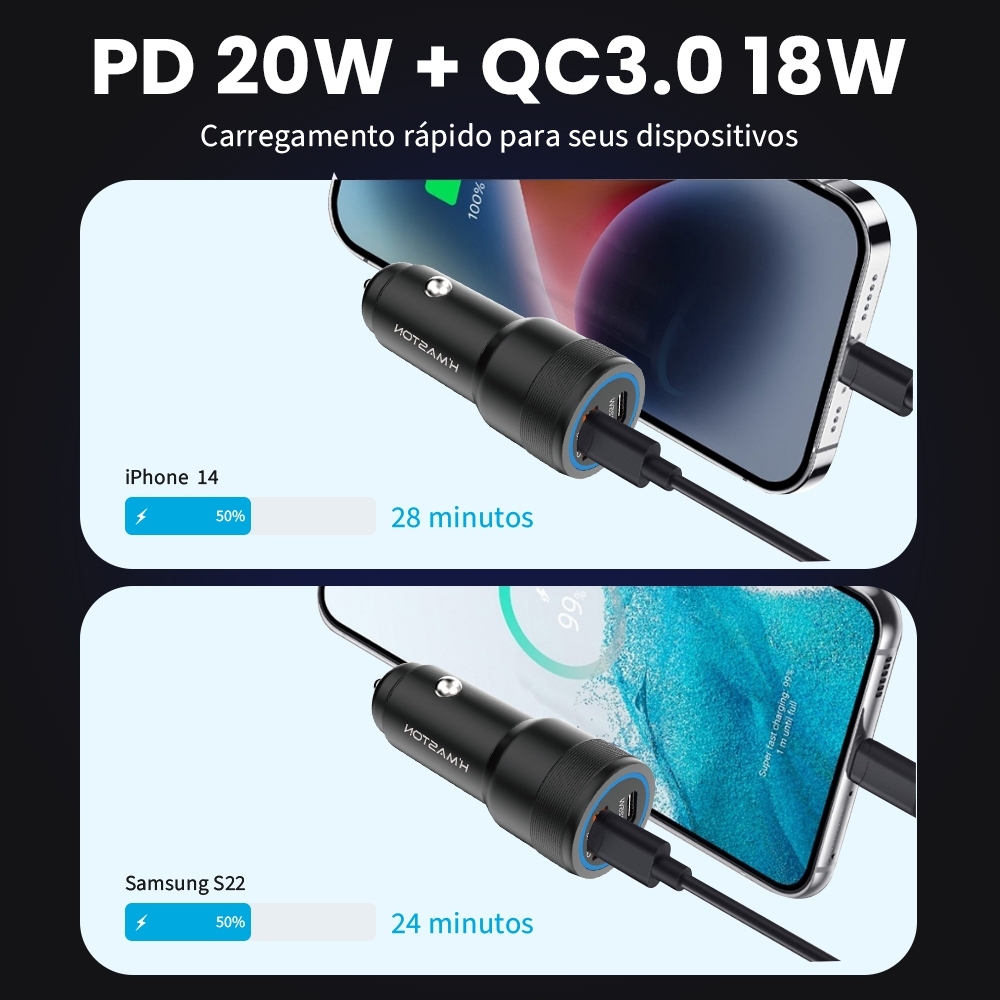 H'maston Carregador Veicular turbo 67W TIPO C + USB Turbo Carregamento rápido/Universal Original