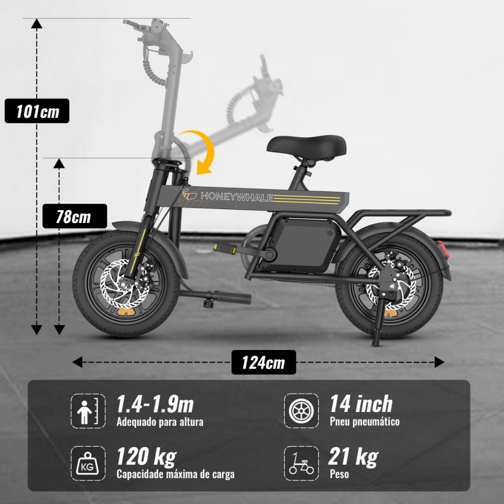 HONEYWHALE B20 Bicicleta Elétrica Adulto, 440W-35KM-25KM/H-120KG, Bike-Autonomia-Velocidade