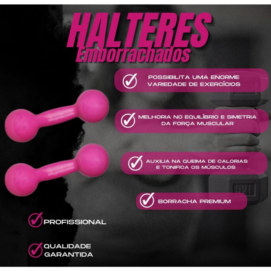 Halter 2 Kg Rosa + Caneleira 2 Kg Rosa + Kit Theraband+ Elástico Multifuncional