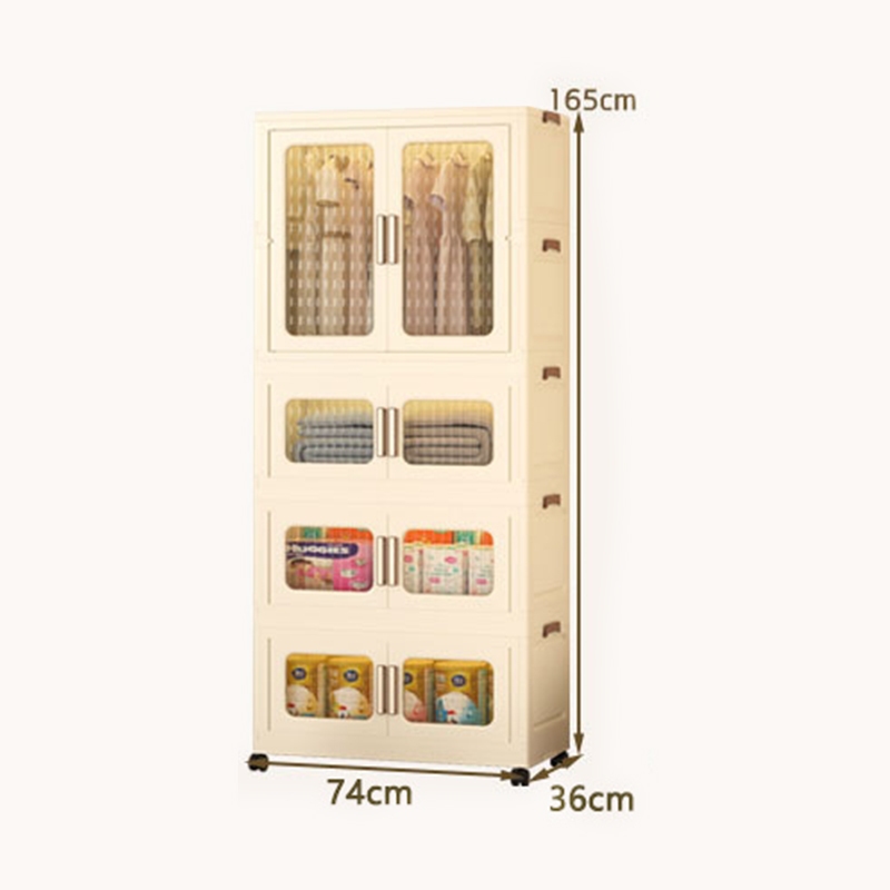 Haosin Armário Organizador Dobrável​​ Guarda-roupa com 3/4 Portas 74CM e Rodinhas Caixa Armazenamento Multiuso Empilhá