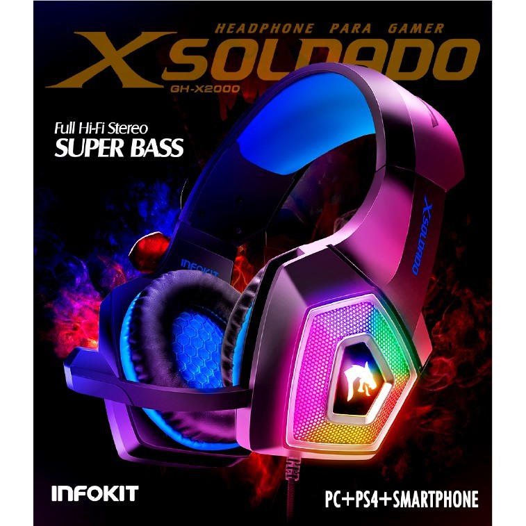 Fone de Ouvido Headset Gamer GH-X2000 Xsoldado 7.1 USB e P2 com LED RGB Over-Ear Com Microfone