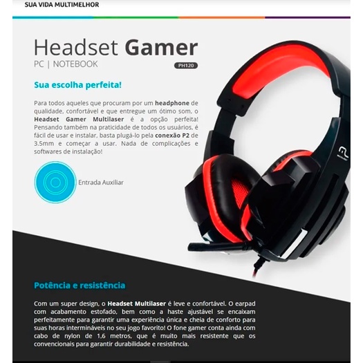 Headset Fone De Ouvido Pc Gamer Celular P2 Multilaser Ph120