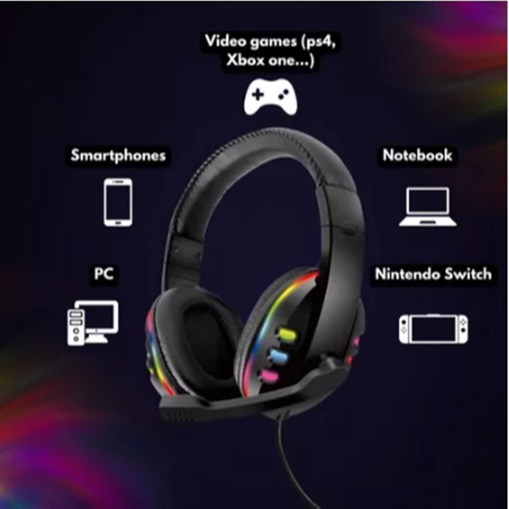 Fone de Ouvido Gamer Led RGB Headset com microfone USB e P2 Para PC Celular Computador Headphone