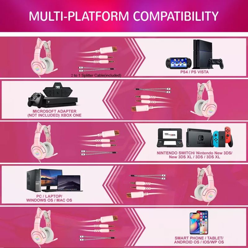 Headset Gamer Profissional Onikuma K9 Rosa Com Orelhas Cor Rosa/com Orelhas Cor Da Luz Rgb