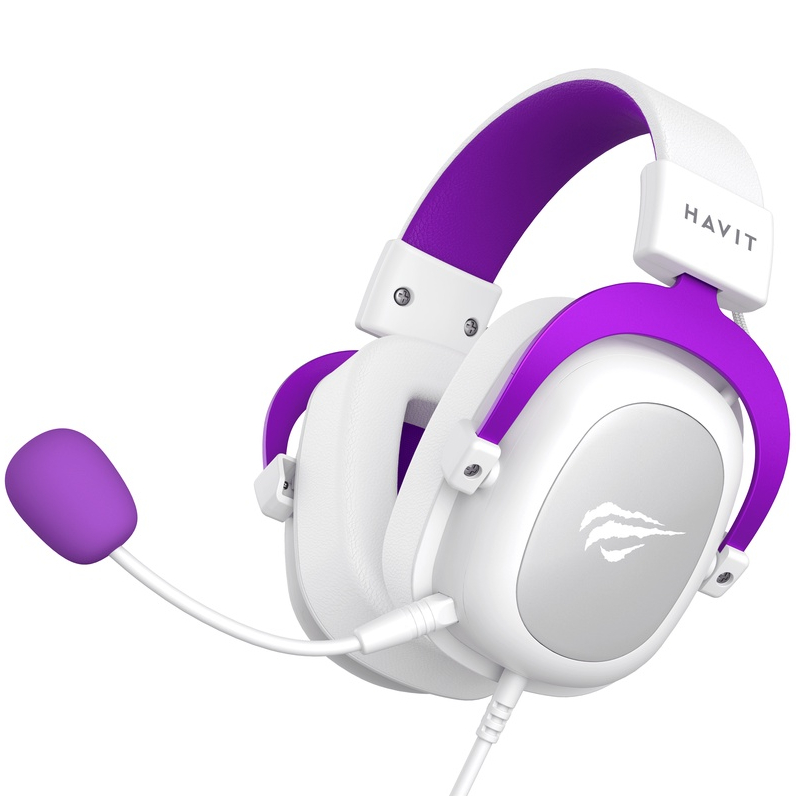 Headset Havit H2002D Branco Roxo Drivers 53mm P3 PC Console
