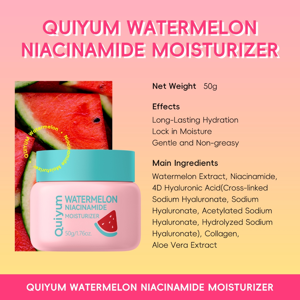 Hidratante Melancia Glow-Boosting QUIYUM – Hidratação Profunda + Iluminador Com Niacinamida E Colágeno 50g