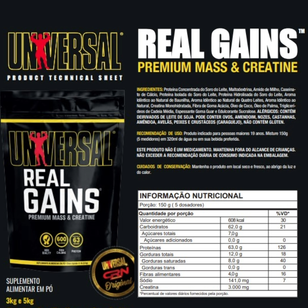Hipercalórico Real Gains 3kg - Universal Nutrition