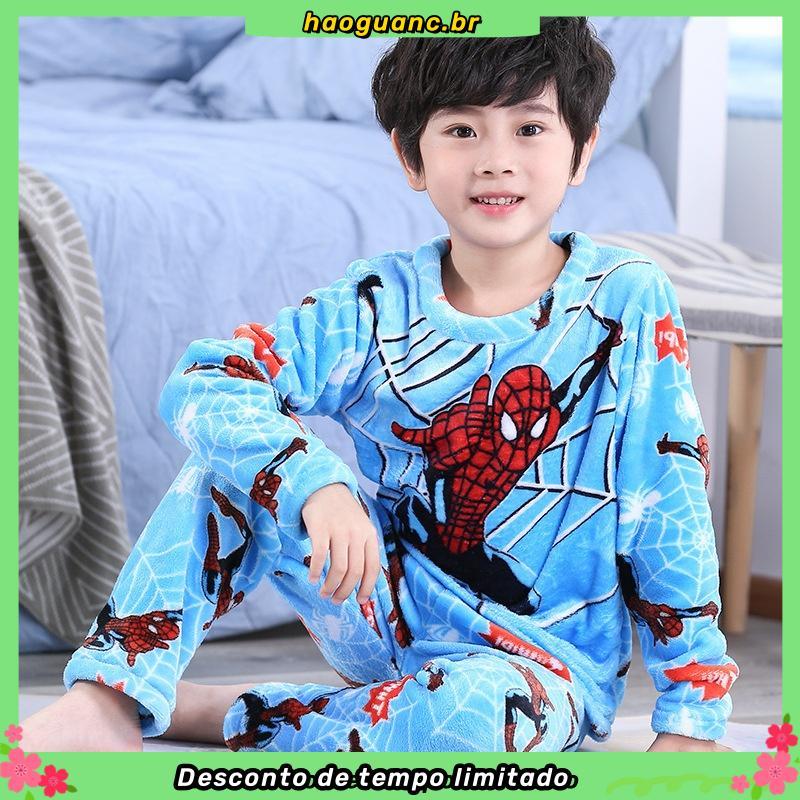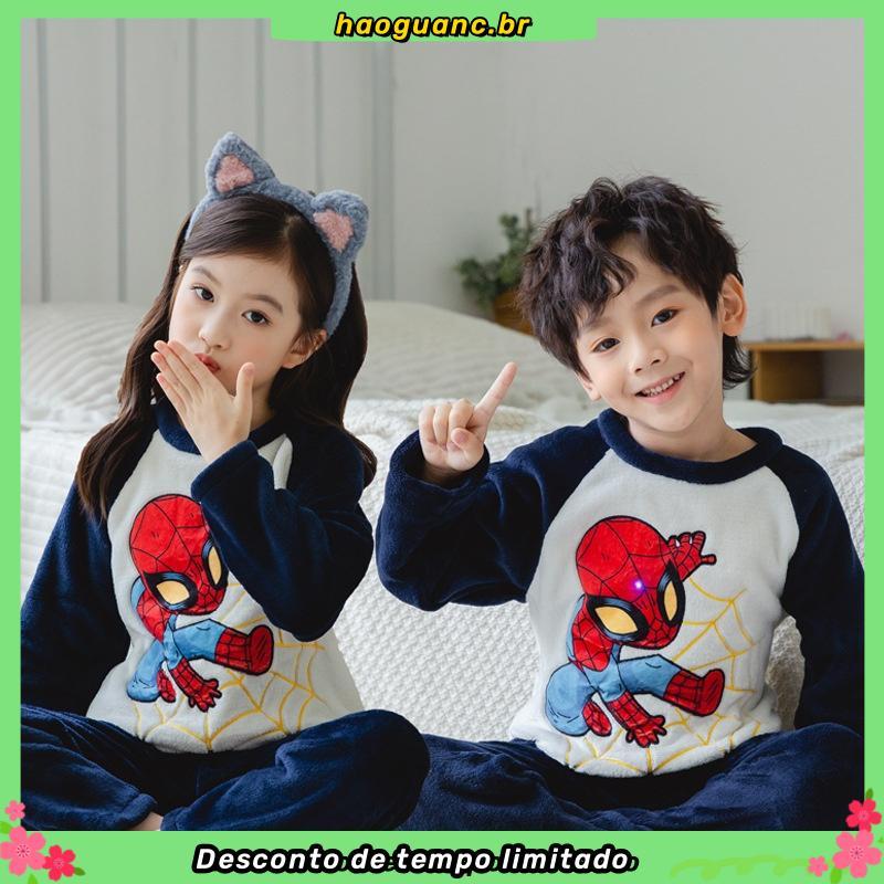 Homem Aranha Meninos Meninas Pijamas Conjunto De Inverno Desenho Animado Roupa De Flanela Grossa Adolescente Velo De Ma