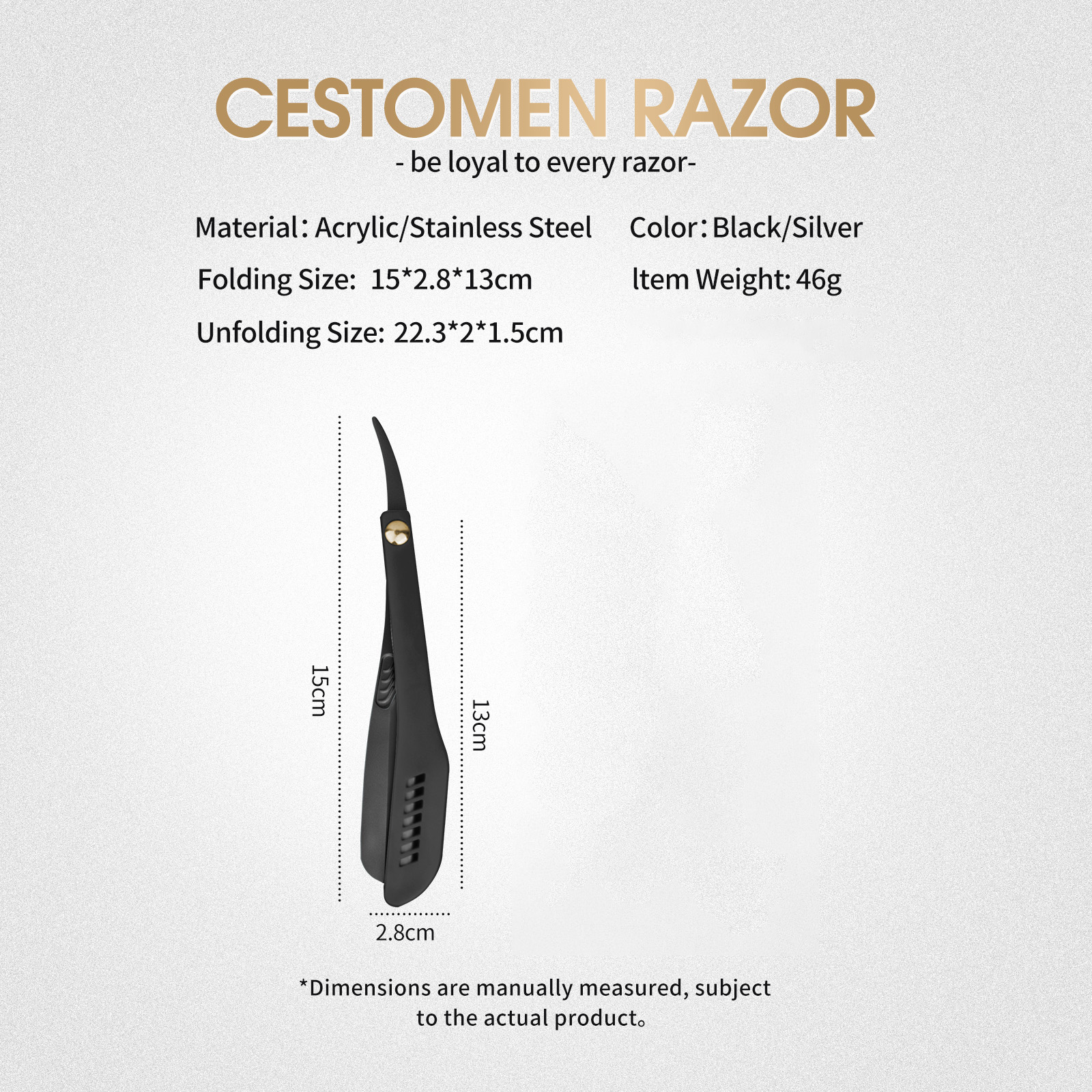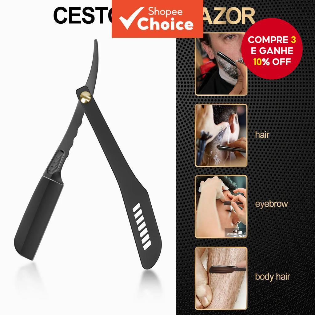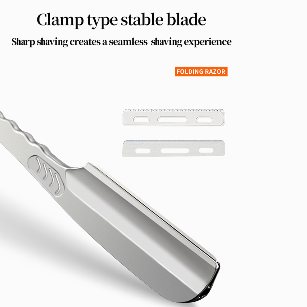 Homem Barbeador Manual Dobrável em Aço Inoxidável para Barba, Navalha de Corte de Cabelo de Salão, Lâmina Reta
